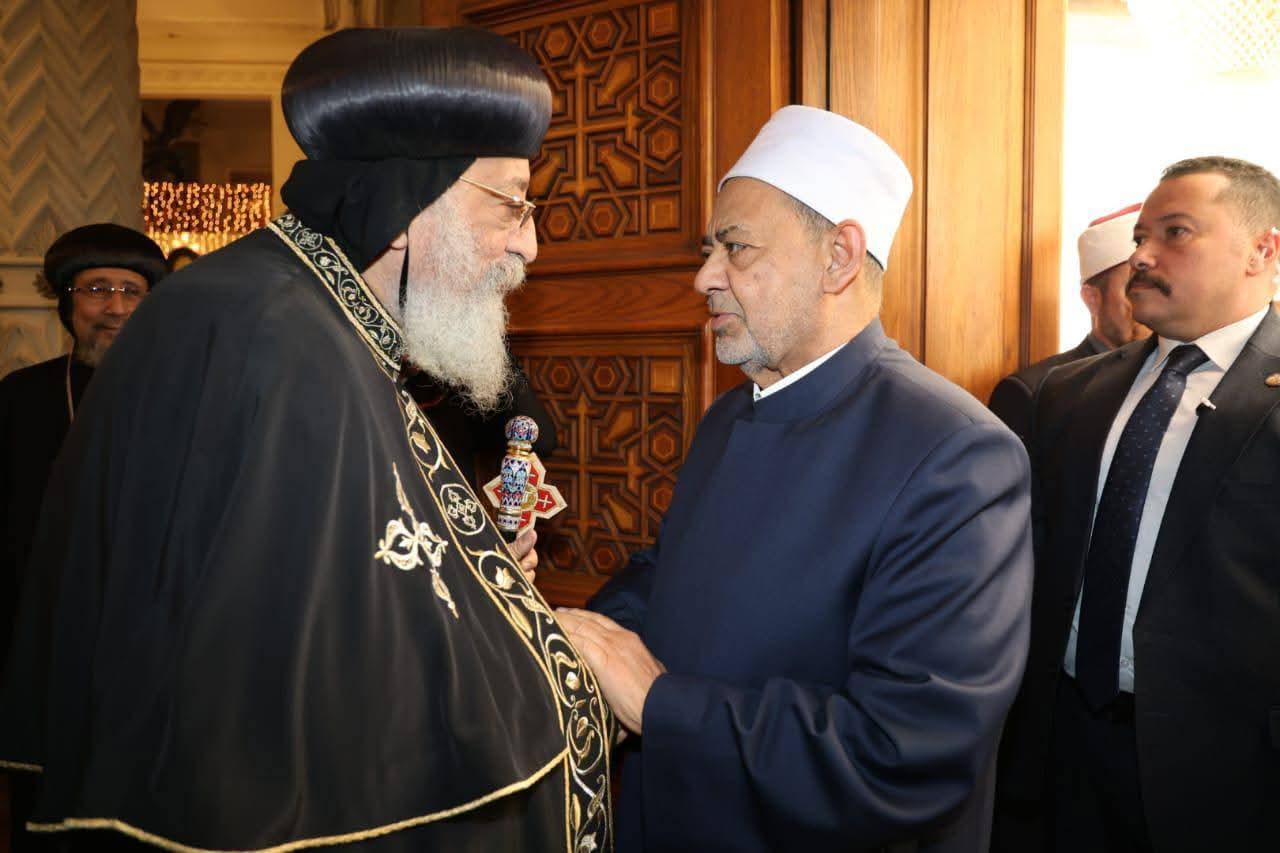 زار فضيلة الإمام الأكبر أ. د. أحمد الطيب، شيخ الأزهر الشريف، اليوم الاثنين، يرافقه وفد أزهري رفيع المستوى، قداسة البابا تواضروس الثاني، بابا الإسكندرية، وبطريرك الكرازة المرقسية؛ للتَّهنئة بأعياد الميلاد، داعيًا المولى -عز وجل- أن يعيد المناسبات السعيدة على مصرنا الحبيبة؛ بمسلميها ومسيحييها، وأن يرزقَها الأمن والأمان، وأن يوفِّر لها كل سبل التقدم والرخاء.