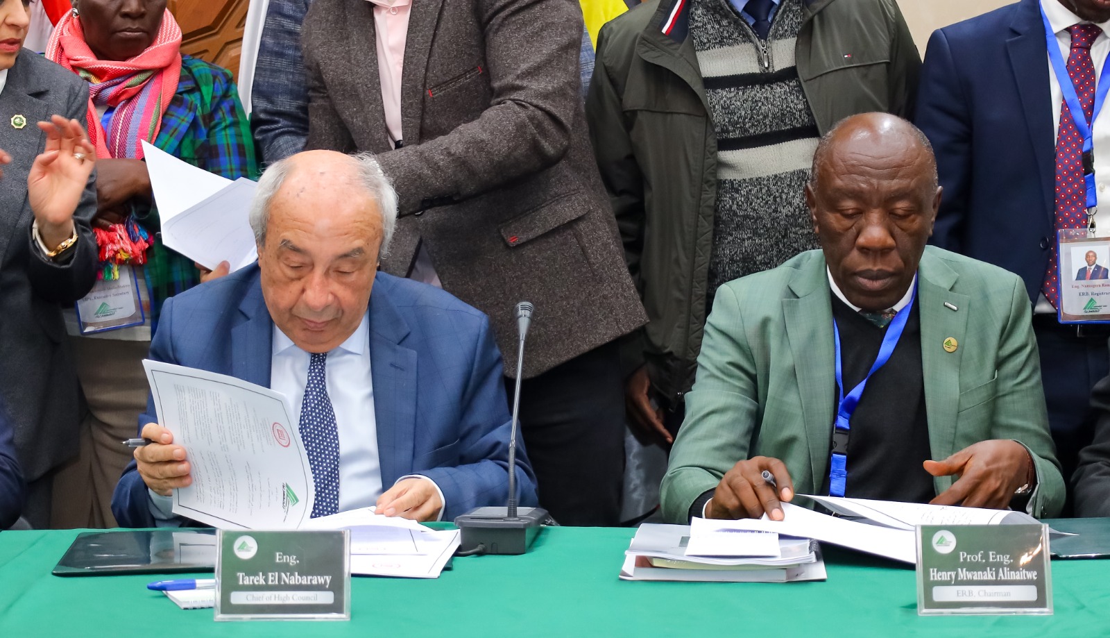 وقع البروتوكولين المهندس طارق النبراوي- نقيب مهندسي مصر ورئيس اتحاد المهندسين العرب، فيما وقعه من الجانب الأوغندي الأستاذ الدكتور هنري مواناكي- رئيس مجلس تسجيل المهندسين بأوغندا، والمهندس بوسكو ليبي- رئيس مؤسسة المهندسين الاستشاريين بأوغندا.