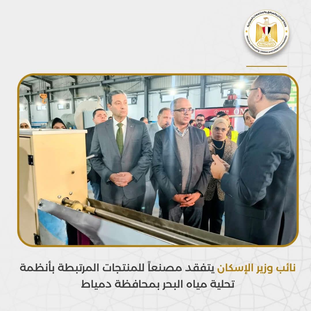 تفقد الدكتور سيد إسماعيل، نائب وزير الإسكان والمرافق والمجتمعات العمرانية، مصنعا لإحدى الشركات المتخصصة في تصنيع المنتجات المرتبطة بأنظمة تحلية مياه البحر بمحافظة دمياط، وذلك في إطار دعم الصناعة الوطنية، والاطلاع على إمكانيات التصنيع المحلي في مجال تكنولوجيات تحلية مياه البحر.